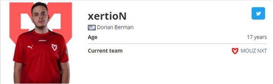 和他的队友broky一样,Twistzz把明日之星预测给到了MOUZ NXT的明星步枪手——17岁的xertioN。