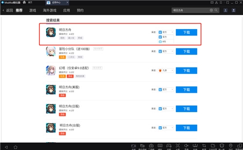 第二步: 下载好MuMu模拟器后,找到“明日方舟”下载安装。