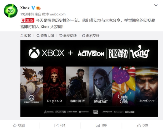 当交易完成后,微软将成为世界上游戏收入最高的第三大公司,仅次于腾讯和索尼。通过这次收购,《使命召唤》、《魔兽世界》、《暗黑破坏神》、《守望先锋》、《糖果粉碎传奇》等标志性系列将全部归为微软所有。