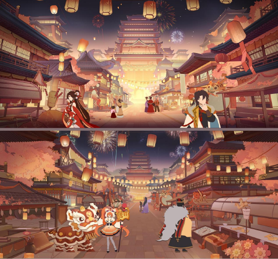 除此之外,玩家们还能够看舞狮、吃年夜饭、领压岁钱,在游戏中度过年味满满的“国韵三幻年”!