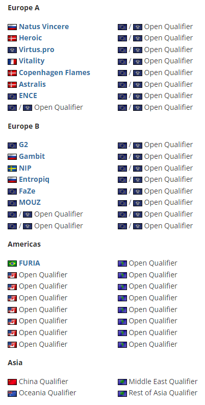 RMR 赛事将于 4 月 11 日至 4 月 24 日举行,涵盖所有三个地区。其中来自美洲的 6 支队伍将获得参赛资格,2 支来自亚洲,16 支来自欧洲,这使得 PGL 安特卫普 的队伍总数达到 24 支。
