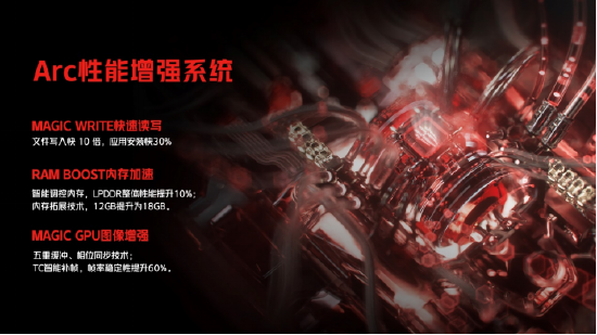 核心配置方面,红魔7系列是全行业第一款搭载全新一代骁龙8移动平台的游戏手机,采用了满血版LPDDR5+UFS3.1与其组成强劲的魔三环引擎,其安兔兔跑分1101769分、鲁大师跑分1224263分再度刷新业界性能榜单!红魔还独立开发了Arc性能增强系统,进一步满足用户日常与游戏场景需求,其核心的MAGIC WRITE快速读写技术、RAM BOOST内存加速技术、MAGIC GPU图像增强技术全面提升,保障性能长时间稳定强力的输出!