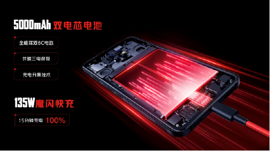 红魔基于多年研发及核心技术储备,实现了红魔7系列充电和续航上的再次突破:最高搭载的135W魔闪快充以及5000mAh大容量电池,再次刷新行业最高标准!同时配备全极耳电芯设计和充电分离技术,标配165W氮化镓充电器,大幅增加手机续航能力,实测15分钟便可充满100%。红魔作为行业拥有手机与充电产品的技术闭环优势的厂商,让红魔7系列充电更快也更加稳定安全。