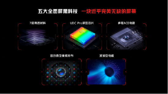 在玩家与手机交互的核心窗口——屏幕方面,红魔7系列继续搭载其首创行业最高165Hz刷新率AMOLED超清电竞全面屏,支持高达960Hz多指控采样率,毫秒级的触控响应,让玩家与游戏交流时始终快人一步。而红魔7 Pro更是直接应用了行业最新的UDC屏下摄像技术,通过两大行业首创技术鼎型像素排列和波浪型电极走线,以及 7层高透材料、内置UDC Pro屏显芯片、多驱ACE电路设计,整块完美无缺的屏幕兼顾显示与拍摄,成为业界首部屏下摄像真全面屏游戏手机,为玩家带来了目前最完整且沉浸的游戏体验!
