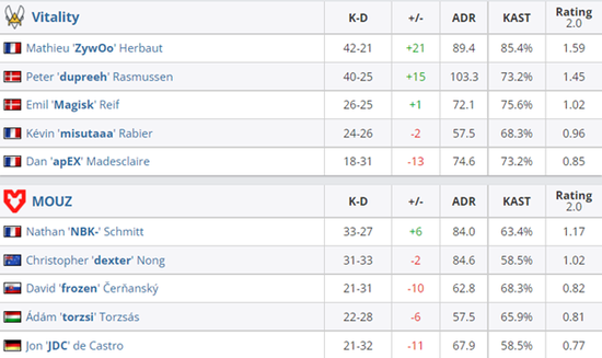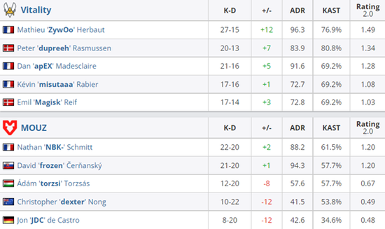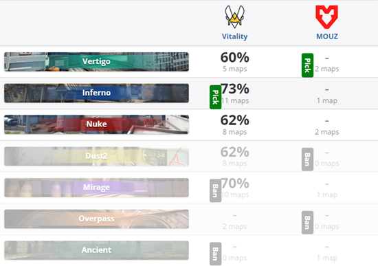 Vitality 2-1 MOUZ (Vertigo 22-19; Inferno 17-19;Nuke 16-10)