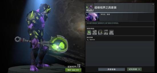 比较值得一说的是混沌军团套装。绝版比赛套装,比赛的主办方Netolic与V社不欢而散,V社直接下架了游戏内观战门票,而这套饰品却流传了下来。存货量不算多吧,也算比较有特色,你现在在搜索引擎里搜“DOTA2混沌军团”,往往会有相关搜“混沌军团神兵”的,可见以前这件武器也是香饽饽。