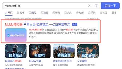 第一步:打开网页搜索“MuMu模拟器”,进入官网